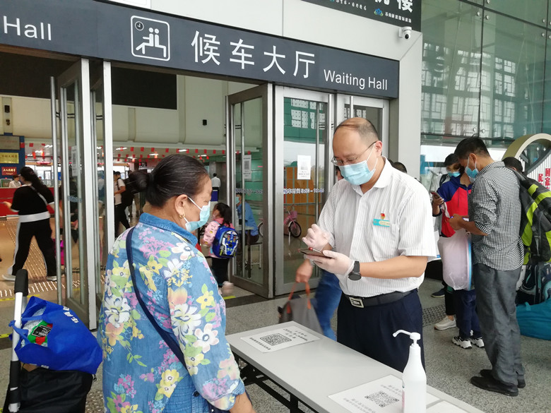 為進一步做好疫情防控工作,車站嚴(yán)格落實掃碼進站措施,在進站口等多處張貼場所碼,方便進站旅客提前掃描出示,減少人員聚集。在進站口設(shè)置了紅外線體溫監(jiān)測儀,進站旅客實現(xiàn)100%測溫通行。